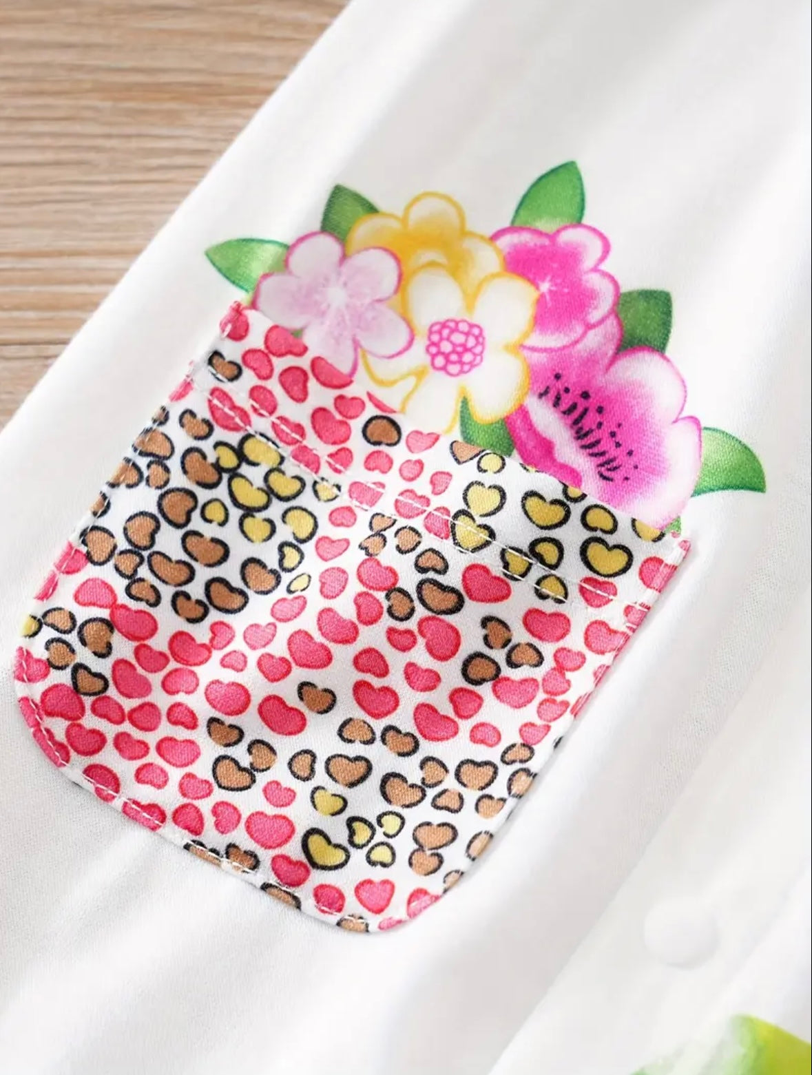 - Ruffle sleeves with pink leopard pattern