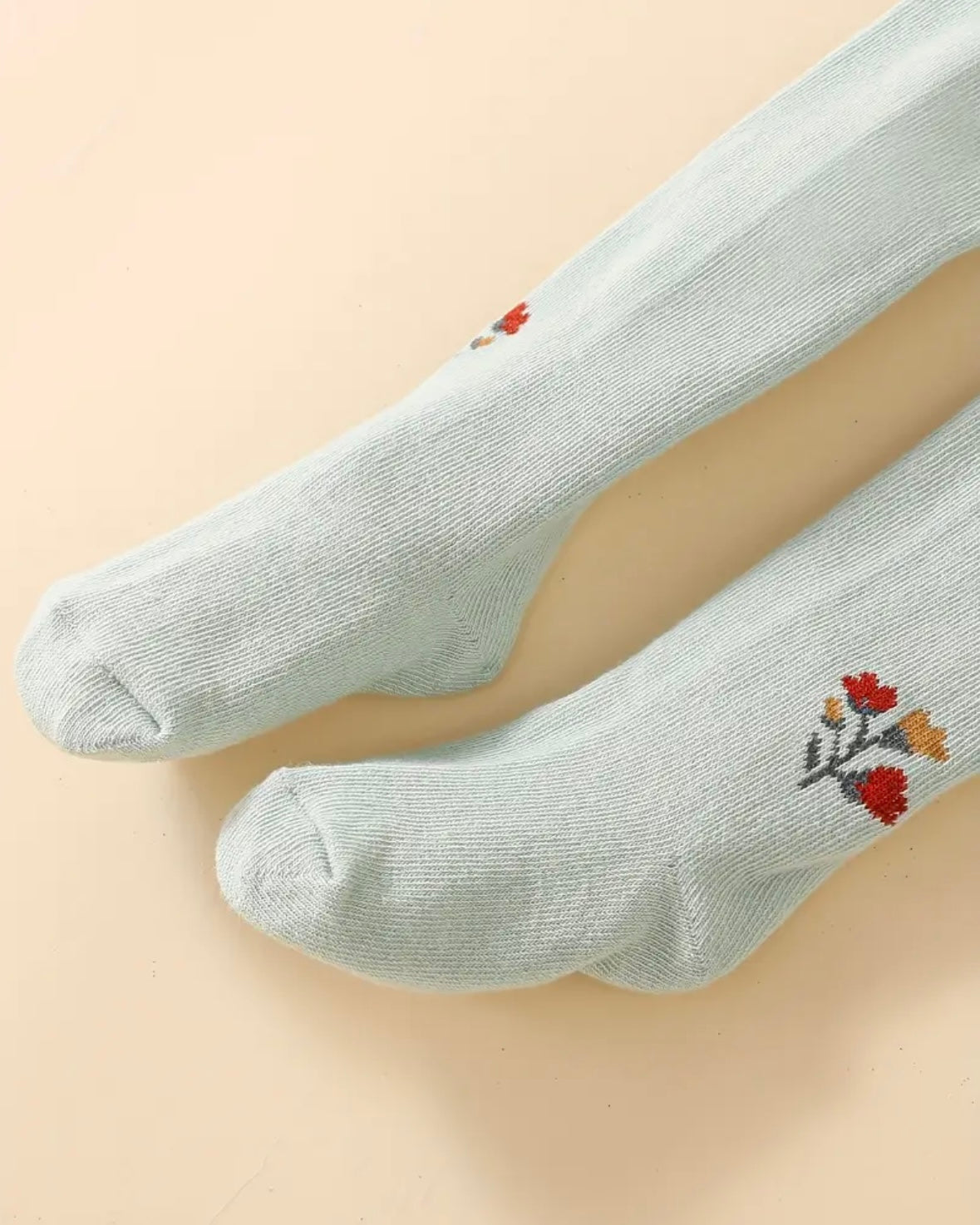 - 🌿 Matching tights with sweet floral embroidery at the ankle.