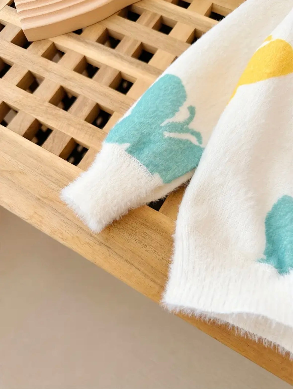 Wrap your little one in warmth and style with this adorable girls’ knit sweater, featuring a playful pastel butterfly print on a soft white base. Made from a cozy, skin-friendly fabric, it’s perfect for everyday wear, layering, or special outings. Ribbed cuffs, neckline, and hem provide a snug fit, while the lightweight knit ensures all-day comfort.