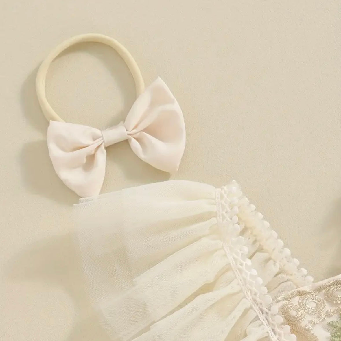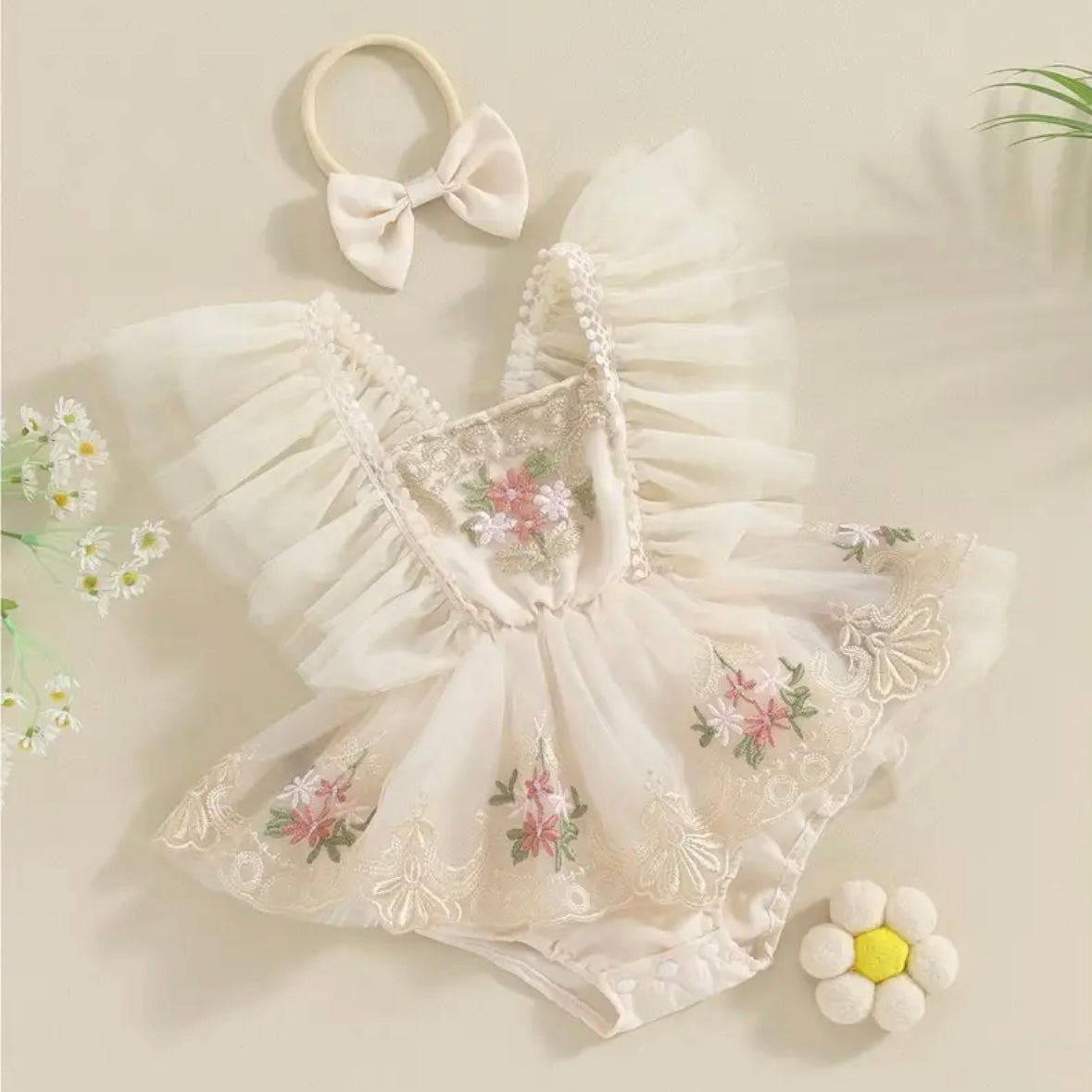 Ivory Angel Wings Tulle Romper with Floral Embroidery – Size 0–3M