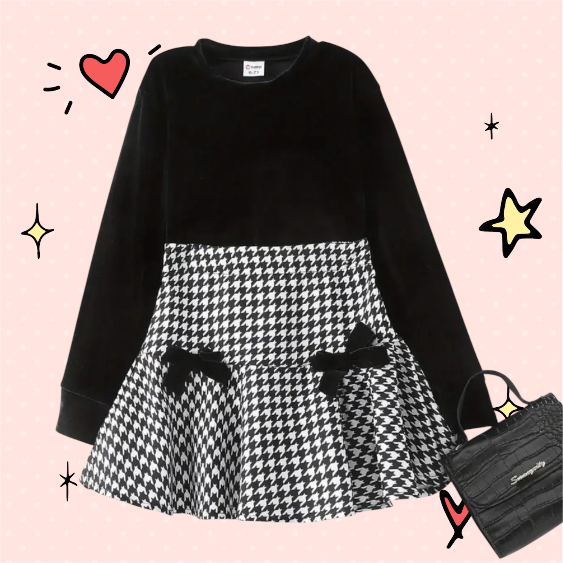 🖤 Mini Muse Houndstooth Set – Size 7–8