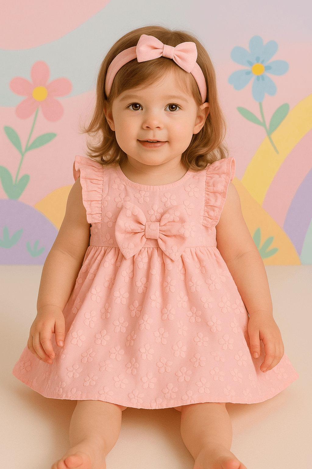 Pink Ruffle Bow Dress – 3D Floral Baby Girl Dress | Infant & Toddler Party Outfit