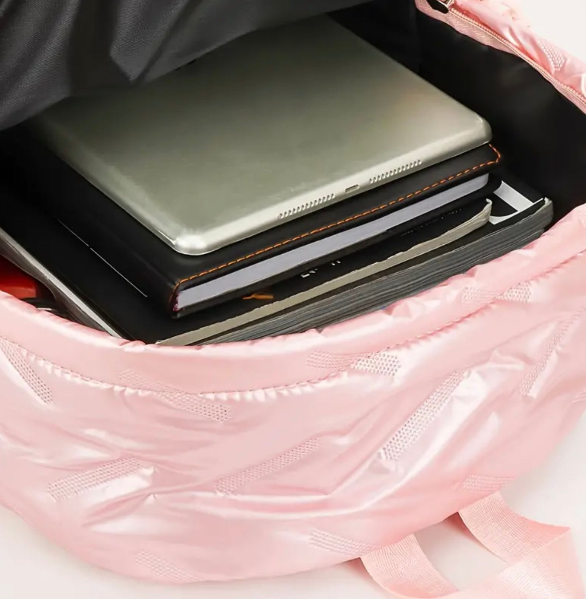 Elevate everyday style with our Premium Glossy Pink Quilted Backpack — a perfect blend of elegance, durability, and functionality. Designed in a soft blush-pink satin finish with a subtle quilted pattern, this bag adds a touch of luxury to any outfit while remaining practical for daily use.