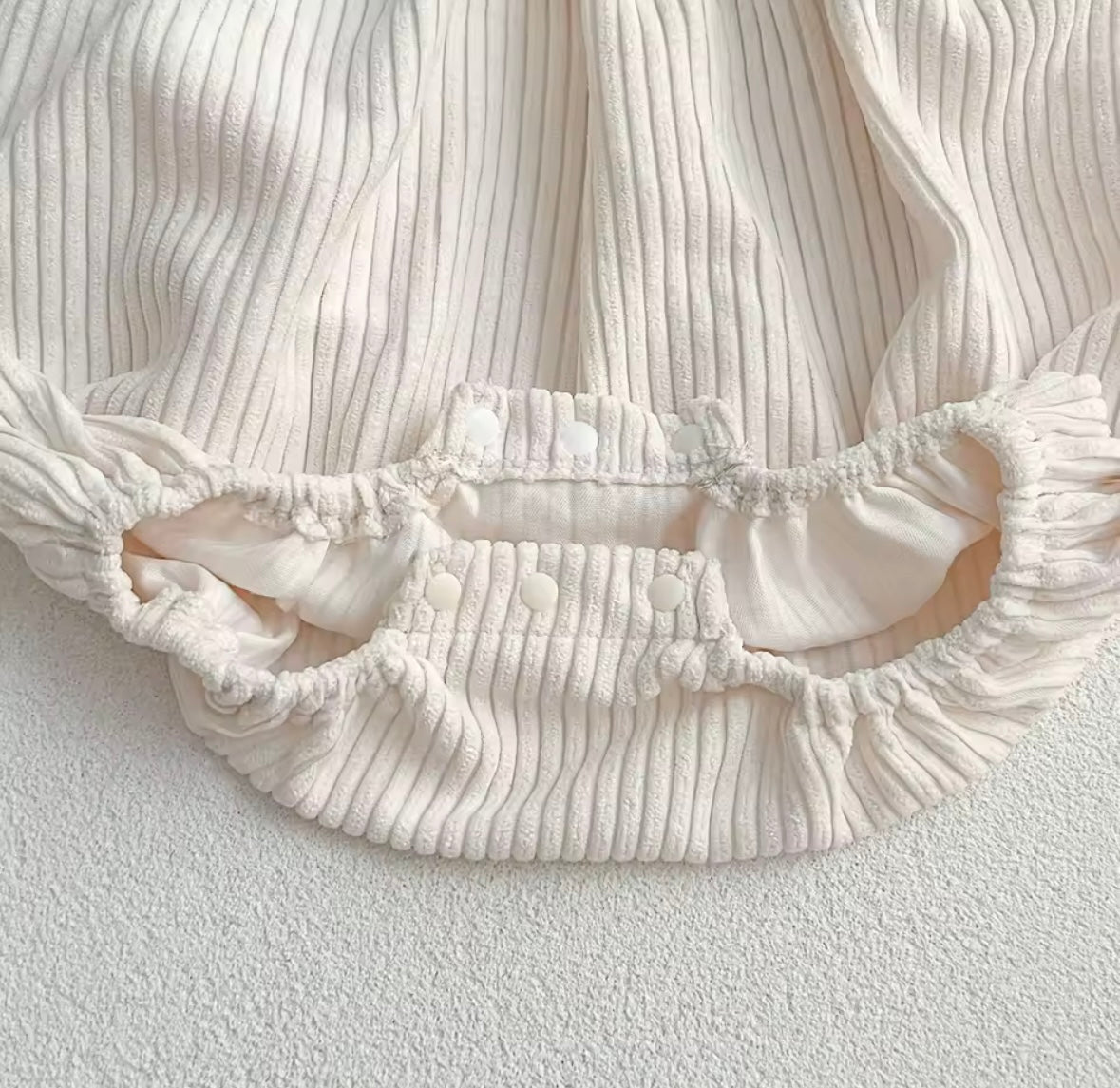 - Snap buttons at the bottom for quick diaper changes
