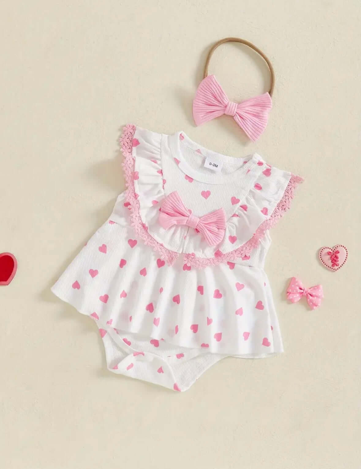 Sweetheart Baby Girl Dress Set – Pink Ruffle Top & Heart Bloomers with Bow Headband