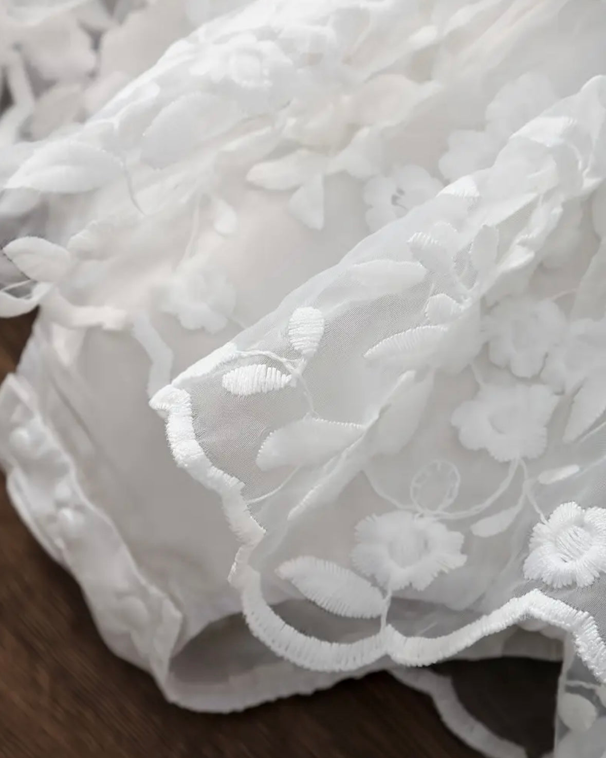 🌸 Material: Cotton blend lining + embroidered tulle